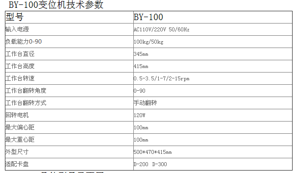 BY-100變位機技術(shù)參數